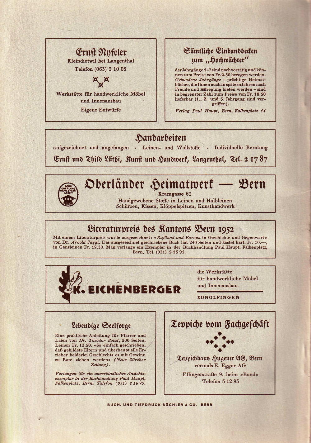 Der Hochwächter - Blätter für heimatliche Art und Kunst Nr. 8 1952