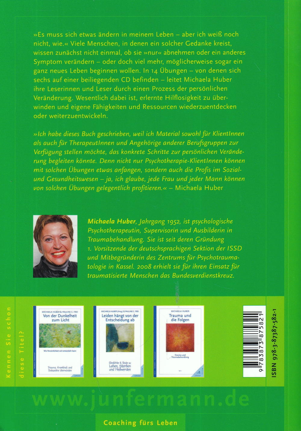 "Es muss sich etwas ändern in meinem Leben - aber ich weiss noch nicht, wie." Viele Menschen, in denen ein solcher Gedanke kreist, wissen zunächst nicht einmal: Wollen sie "nur" abnehmen oder ein Symptom verändern? Oderwollen sie doch viel mehr - möglicherweise sogar ein ganz neues Leben beginnen? In 14 Übungen - sechs befinden sich auf einer beiliegenden CD - leitet Michaela Huber ihre LeserInnen durch einen Prozess der persönlichen Veränderung. Wesentlich dabei ist, erlernte Hilflosigkeit zu überwinden und eigene Fähigkeiten und Ressourcen wieder zu entdecken oder weiterzuentwickeln.