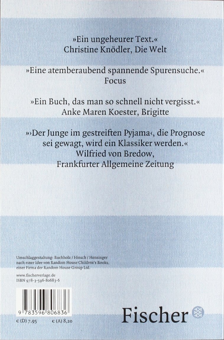 Der neunjährige Bruno weiss nichts von der Endlösung oder dem Holocaust. Er ist unberührt von den entsetzlichen Grausamkeiten, die sein Land dem europäischen Volk zufügt. Er weiss nur, dass man ihn von seinem gemütlichen Zuhause in Berlin in ein Haus verpflanzt hat, das in einer öden Gegend liegt, in der er nichts unternehmen kann und keiner mit ihm spielt. Bis er Schmuel kennenlernt, einen Jungen, der ein seltsam ähnliches Dasein auf der anderen Seite des angrenzenden Drahtzauns fristet und der, wie alle Menschen dort, einen gestreiften Pyjama trägt. Durch die Freundschaft mit Schmuel werden Bruno, dem unschuldigen Jungen, mit der Zeit die Augen geöffnet. Und während er erforscht, wovon er unwissentlich ein Teil ist, gerät er unvermeidlich in die Fänge des schrecklichen Geschehens.