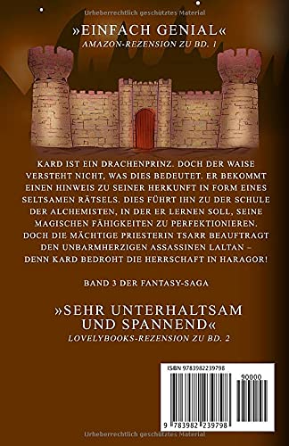 Kard ist ein Drachenprinz. Doch der Waise versteht nicht, was dies bedeutet. Er bekommt einen Hinweis zu seiner Herkunft in Form eines seltsamen Rätsels. Dies führt ihn zu der Schule der Alchemisten, in der er lernen soll, seine magischen Fähigkeiten zu perfektionieren. Doch die mächtige Priesterin Tsarr beauftragt den unbarmherzigen Assassinen Laltan – denn Kard bedroht die Herrschaft in Haragor! Band 3 der Fantasy-Saga.