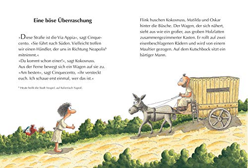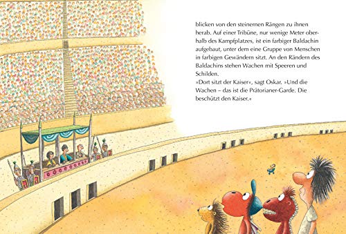 »Manno, wie gern würde ich mal einen echten Gladiatorenkampf sehen!«, seufzt Oskar, während er und sein Freund Kokosnuss in einem spannenden Comic über das Alte Rom schmökern. Matilda versteht überhaupt nicht, was die Drachenjungen immer am Kämpfen finden, aber dann lässt sie sich doch zu einer Laserphaser-Zeitreise ins Alte Rom überreden. Sie landen in einem Wald vor den Toren Roms, wo sie einen entlaufenen Sklaven treffen. Noch während der Sklave ihnen seine Geschichte erzählt, werden sie von den Häschern des Kaisers gefangen genommen und in die Gladiatorenschule gesteckt...Die Geschichten über die aufregenden Abenteuer, die der kleine Drache Kokosnuss mit seinen Freunden erlebt, sind inzwischen wahre Kinderbuchklassiker. Ingo Siegner schreibt über Freundschaft und Mut und fügt liebenswert-originelle Illustrationen hinzu. Die »Dein-Spiegel-Bestseller«-Reihe eignet sich perfekt zum Vor- und Selberlesen.