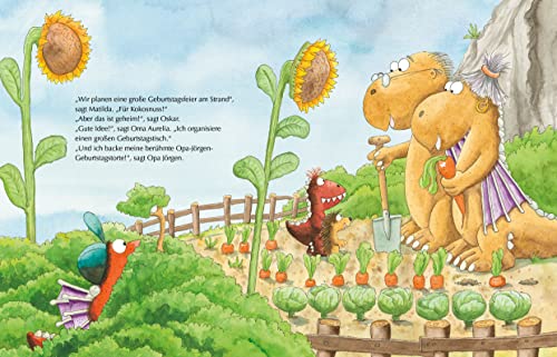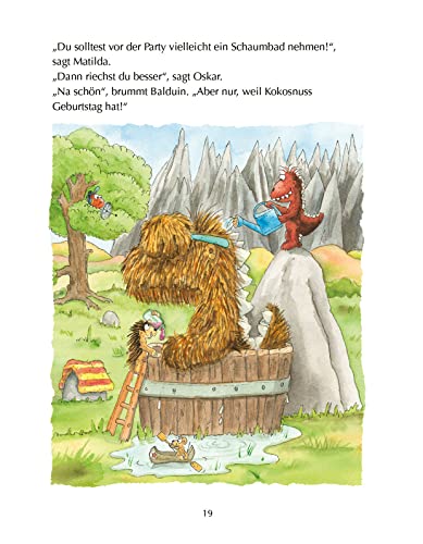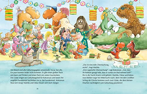 Der kleine Drache Kokosnuss ist aufgeregt: Er hat bald Geburtstag und würde gern feiern! Aber wenn er seine Eltern Mette und Magnus fragt, weichen sie ihm aus. Komisch...Merkwürdig findet Kokosnuss auch, dass Oskar und Matilda nicht über das Thema »Geburtstag« sprechen wollen. Er ahnt nicht, dass Oskar und Matilda eine riesige Überraschungsparty mit vielen Gästen planen: Vampir Bissbert, die Gespenster Klemenzia und Gerd, Höhlenungeheuer Balduin, Pirat Pieter Backbord, Trödel-Knödel, Wilde Hummel, Affe Jojo und viele mehr.