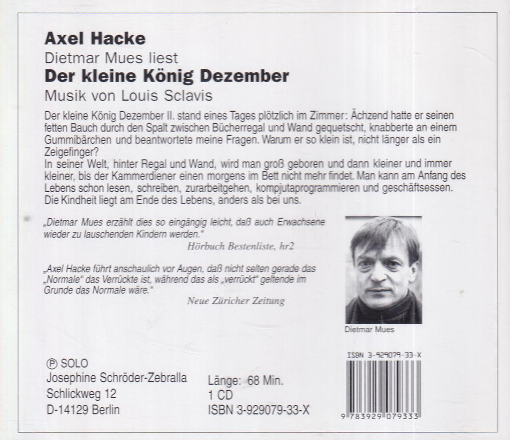 Der kleine König Dezember II. Stand eines Tages plõtzlich im Zimmer: Achzend hatte er seinen fetten Bauch durch den Spalt zwischen Bücherregal und Wand gequetscht, knabberte an einem Gummibārchen und beantwortete meine Fragen. Warum er so klein ist, nicht länger als ein Zeigefinger?