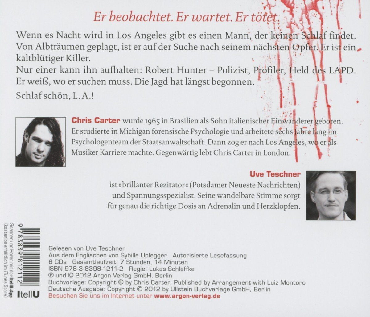 Wenn es Nacht wird in Los Angeles gibt es einen Mann, der keinen Schlaf findet. Von Albträumen heimgesucht, ist er auf der Suche nach seinem nächsten Opfer. Nur einer kann ihn aufhalten: Robert Hunter – Polizist, Profiler, Held des LAPD. Er weiß, wo er suchen muss. Die Jagd hat längst begonnen. Schlaf schön, L.A.!