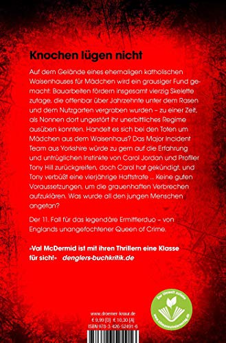 Die berühmte wie spannende Thriller-Reihe um Detective Chief Inspector Carol Jordan und Profiler Tony Hill geht weiter! Die Neuerscheinung der Thriller-Queen Val McDermid: der 11. Fall des kultigen Ermittlerduos sorgt selbst bei hartgesottenen Thriller-Fans für schlaflose Nächte. Auf dem Gelände eines ehemaligen katholischen Waisenhauses für Mädchen wird ein grausiger Fund gemacht: Bauarbeiten fördern insgesamt vierzig Skelette zutage, die offenbar über Jahrzehnte unter dem Rasen und dem Nutzgarten vergraben wurden – zu einer Zeit, als Nonnen dort ungestört ihr unerbittliches Regime ausüben konnten. Handelt es sich bei den Toten um Mädchen aus dem Waisenhaus?