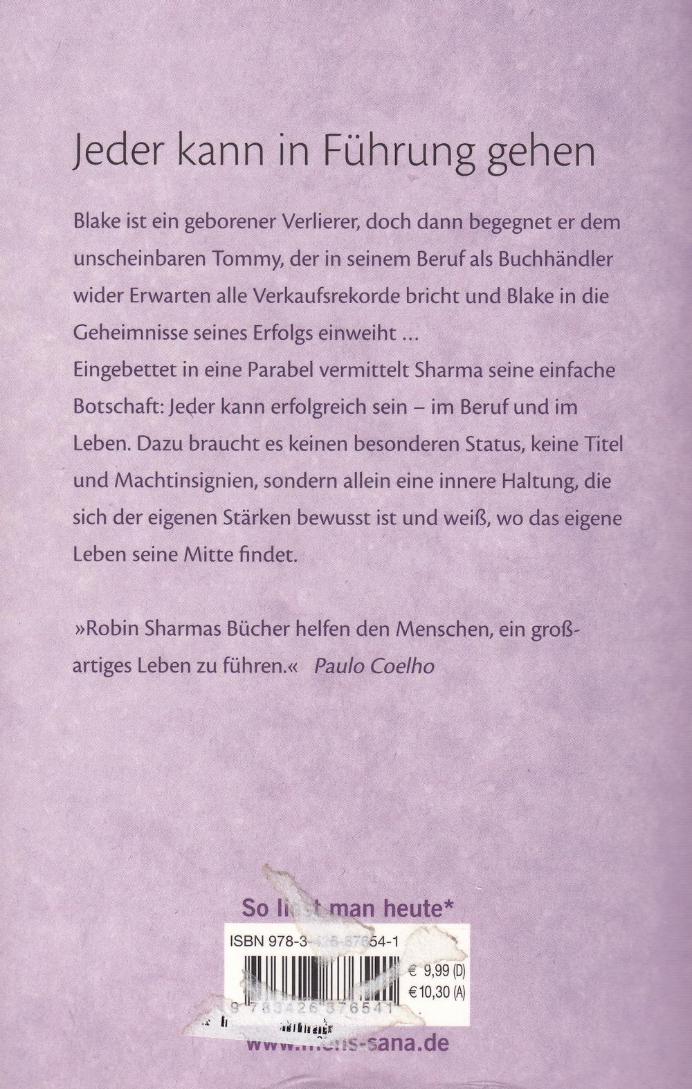 Eingebettet in eine Parabel vermittelt Sharma seine einfache Botschaft: Jeder kann erfolgreich sein – im Beruf und im Leben. Dazu braucht es keinen besonderen Status, keine Titel und Machtinsignien, sondern allein eine innere Haltung, die sich der eigenen Stärken bewusst ist und weiss, wo das eigene Leben seine Mitte findet.