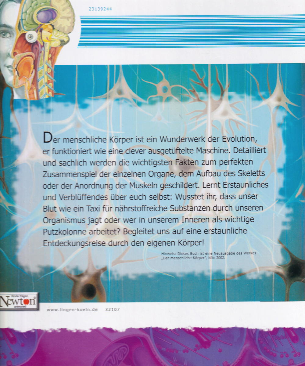 Der menschliche Körper ist ein Wunderwerk der Evolution, er funktioniert wie eine clever ausgetüftelte Maschine. Detailliert und sachlich werden die wichtigsten Fakten zum perfekten Zusammenspiel der einzelnen Organe, dem Aufbau des Skeletts oder der Anordnung der Muskeln geschildert. Lernt Erstaunliches und Verblüffendes über euch selbst: Wusstet ihr, dass unser Blut wie ein Taxi für nährstoffreiche Substanzen durch unseren Organismus jagt oder wer in unserem Inneren als wichtige Putzkolonne arbeitet? Begleitet uns auf eine erstaunliche Entdeckungsreise durch den eigenen Körper!