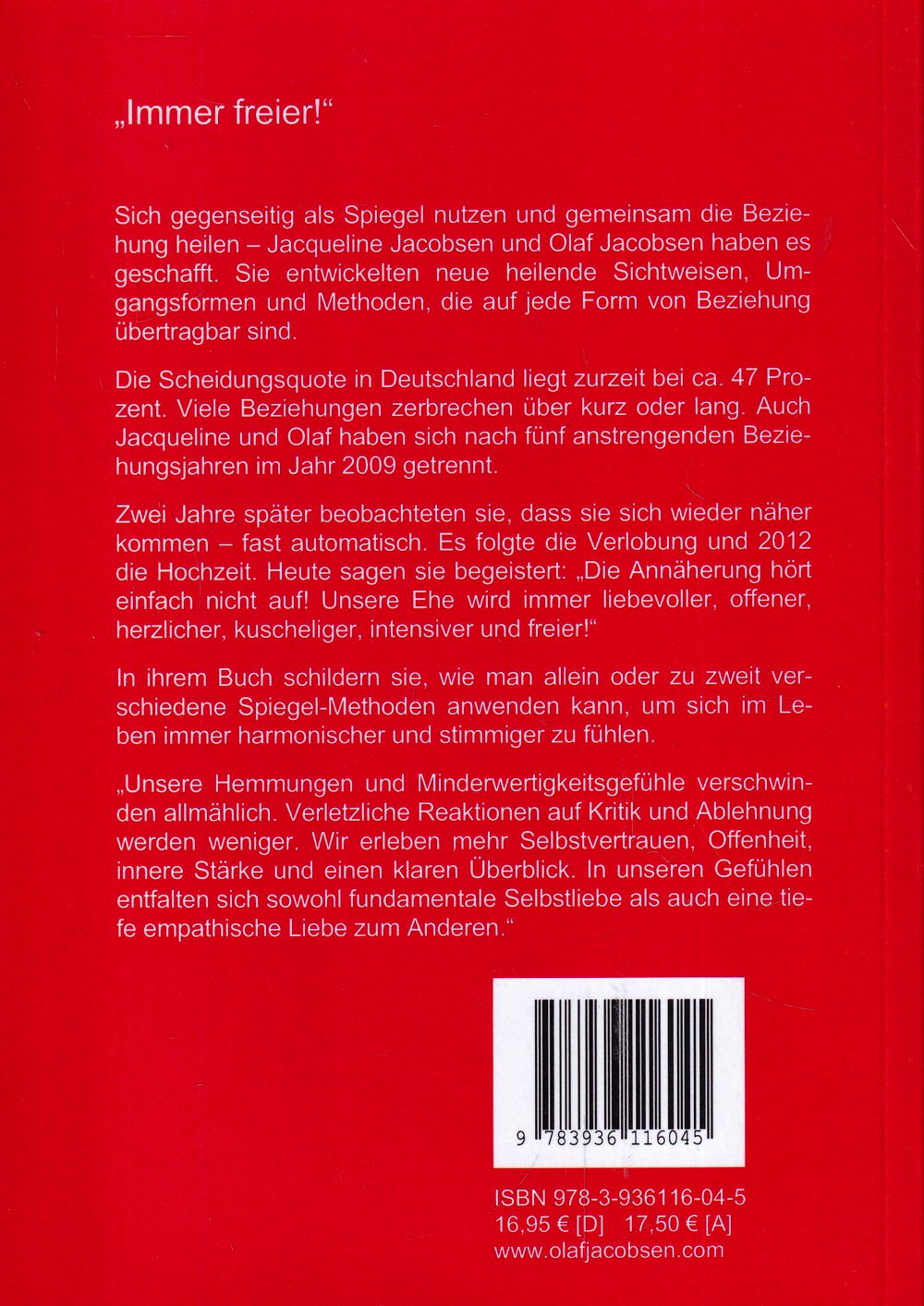 Sich gegenseitig als Spiegel nutzen und gemeinsam die Beziehung heilen - Jacqueline Jacobsen und Olaf Jacobsen haben es geschafft. Sie entwickelten neue heilende Sichtweisen, Umgangsformen und Methoden, die auf jede Form von Beziehung übertragbar sind und einem die Augen öffnen.