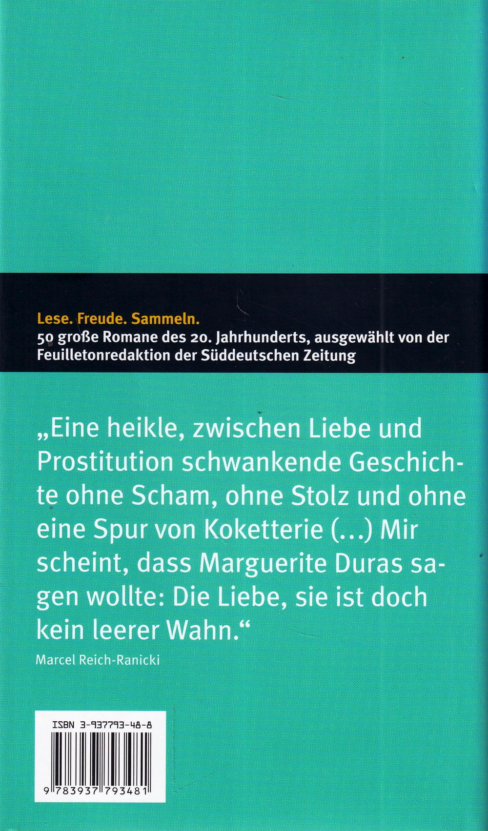 Marguerite Duras, eigtl. M. Donnadieu, geb. in Giadinh (Vietnam) am 4.4.1914 geboren. Sie studierte Jura, Staatswisssenschaften und Mathematik. Im Zweiten Weltkrieg war sie Mitglied der Resistance, ihr Ehemann Robert Antelme, wurde in ein deutsches Konzentrationslager deportiert. Das Bangen um ihren Mann, dessen Rettung und Rückkehr nach Frankreich beschreibt Marguerite Duras in ihrem (Tage-)Buch. Nach dem Krieg arbeitete sie als Journalistin. Die Schriftstellerin und Regisseurin gilt als eine der Hauptvertreterinnen des Nouveau roman.