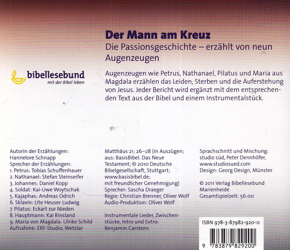 Augenzeugen wie Petrus, Nathanael, Pilatus und Maria aus Magdala erzählen das Leiden, Sterben und die Auferstehung von Jesus. Jeder Bericht wird ergänzt mit dem entsprechenden Text aus der Bibel und einem Instrumentalstück.