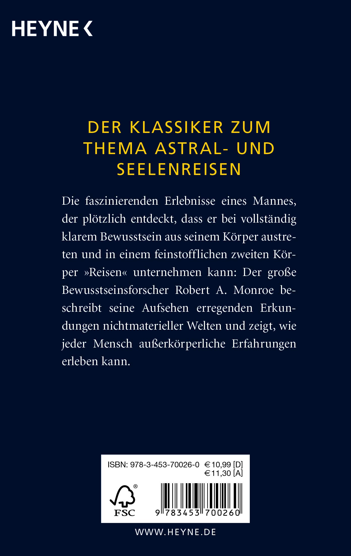 Der Klassiker zum Thema Astral- und Seelenreisen: Der große Bewusstseinsforscher und Erfolgsautor Robert A. Monroe beschreibt seine Aufsehen erregenden Erkundungen nichtmaterieller Welten. Ausführliche Anleitungen, welche die gefahrlose Durchführung eigener Experimente ermöglichen, machen dieses Buch zu einem Muss für den praxisorientierten spirituellen Leser.