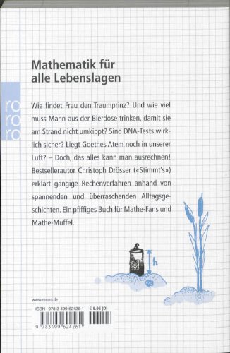 Wie findet Frau den Traumprinz? Und wie viel muss Mann aus der Bierdose trinken, damit sie am Strand nicht umkippt? Sind DNA-Tests wirklich sicher? Liegt Goethes Atem noch in unserer Luft? - Doch, dass alles kann man ausrechnen! Bestsellerautor Christoph Drösser ("Stimmt's?") erklärt gängige Rechenverfahren anhand von spannenden und überraschenden Alltagsgeschichten. Ein pfiffiges Buch für Mathe-Fans und Mathe-Muffel.