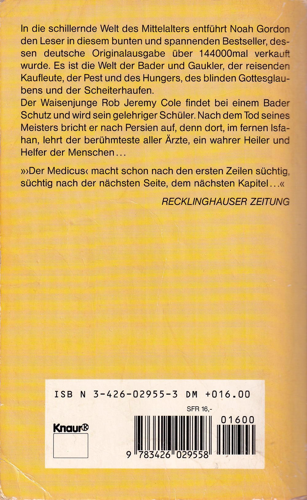 "Der Medicus" macht schon nach den ersten Zeilen süchtig, süchtig nach der nächsten Seite, dem nächsten Kapitel. RECKLINGHAUSER ZEITUNG