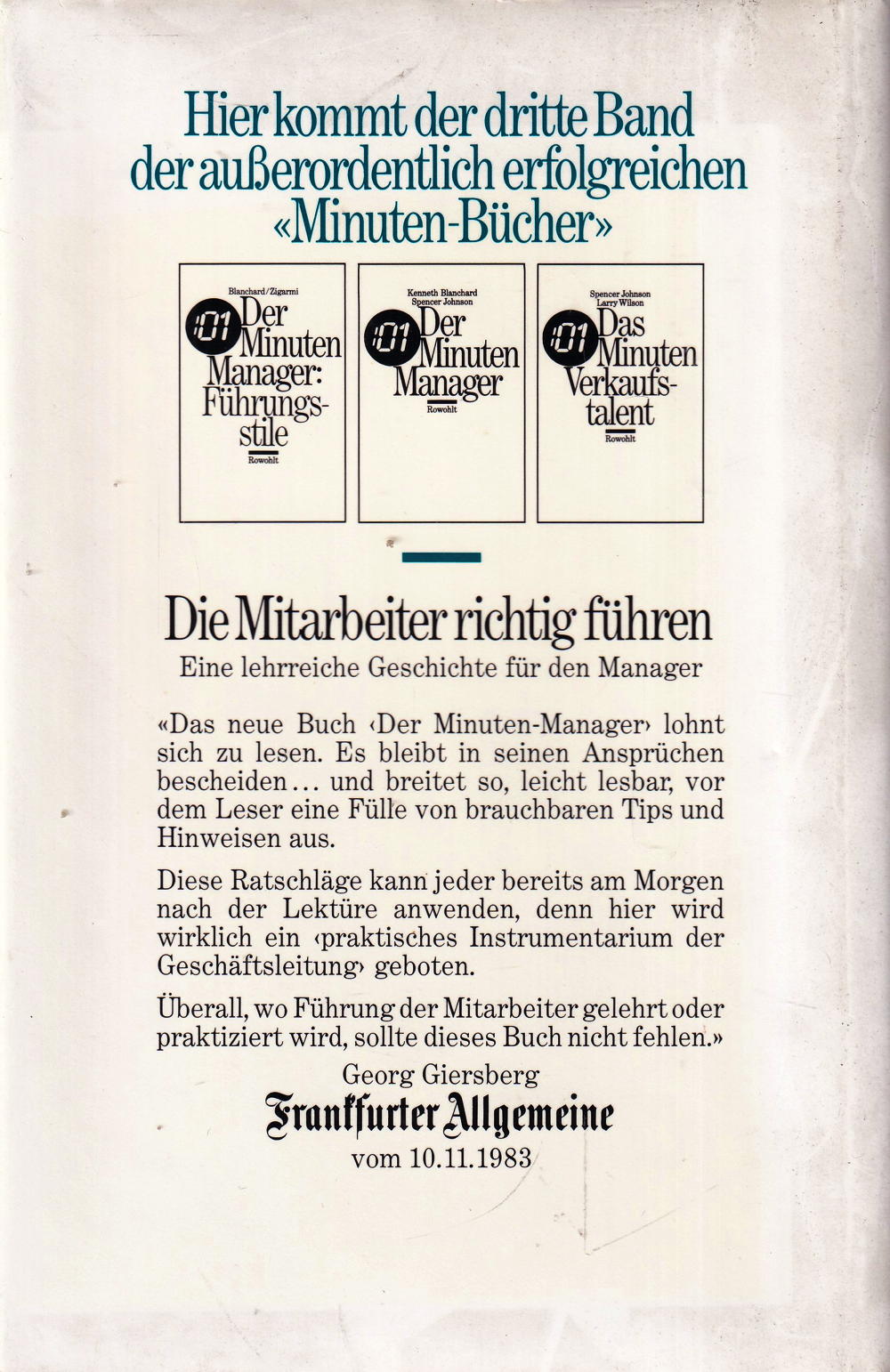Die Mitarbeiter richtig führen Eine lehrreiche Geschichte für den Manager «Das neue Buch «Der Minuten-Manager lohnt sich zu lesen. Es bleibt in seinen Ansprüchen bescheiden... Und breitet so, leicht lesbar, vor dem Leser eine Fülle von brauchbaren Tips und Hinweisen aus.