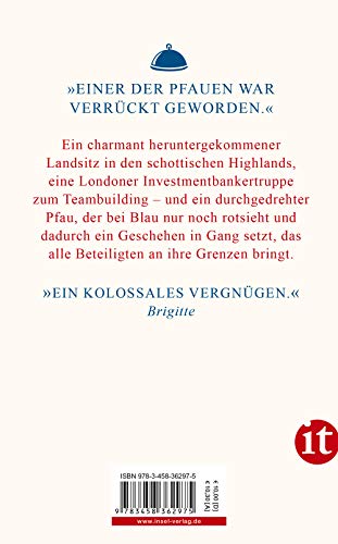 Pointenreich, very british und urkomisch erzählt Isabel Bogdan von einem Wochenende, an dem alles anders kommt als geplant: Eine Gruppe Investmentbanker reist samt ambitionierter Psychologin und erfindungsreicher Köchin aus London an, um in der ländlichen Abgeschiedenheit bei einer Teambildungsmassnahme die Zusammenarbeit zu verbessern. Doch das spartanische Ambiente und ein verrückt gewordener Pfau bringen sie dabei gehörig aus dem Konzept. Und nicht nur sie: Denn die pragmatische Problemlösung des Hausherrn Lord McIntosh setzt ein Geschehen in Gang, das sämtliche Beteiligte an die Grenzen ihrer nervlichen Belastbarkeit bringt. So britisch-unterhaltsam ist in deutscher Sprache noch nicht erzählt worden!