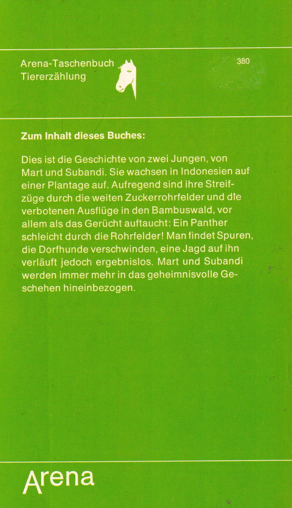 Dies ist die Geschichte von zwei Jungen, von Mart und Subandi. Sie wachsen in Indonesien auf einer Plantage auf. Aufregend sind ihre Streifzüge durch die weiten Zuckerrohrfelder und dte verbotenen Ausflüge in den Bambuswald, vor allem als das Gerücht auftaucht: Ein Panther schleicht durch die Rohrfelder! Man findet Spuren, die Dorfhunde verschwinden, eine Jagd auf ihn verläuft jedoch ergebnislos. Mart und Subandi werden immer mehr in das geheimnisvolle Geschehen hineinbezogen.