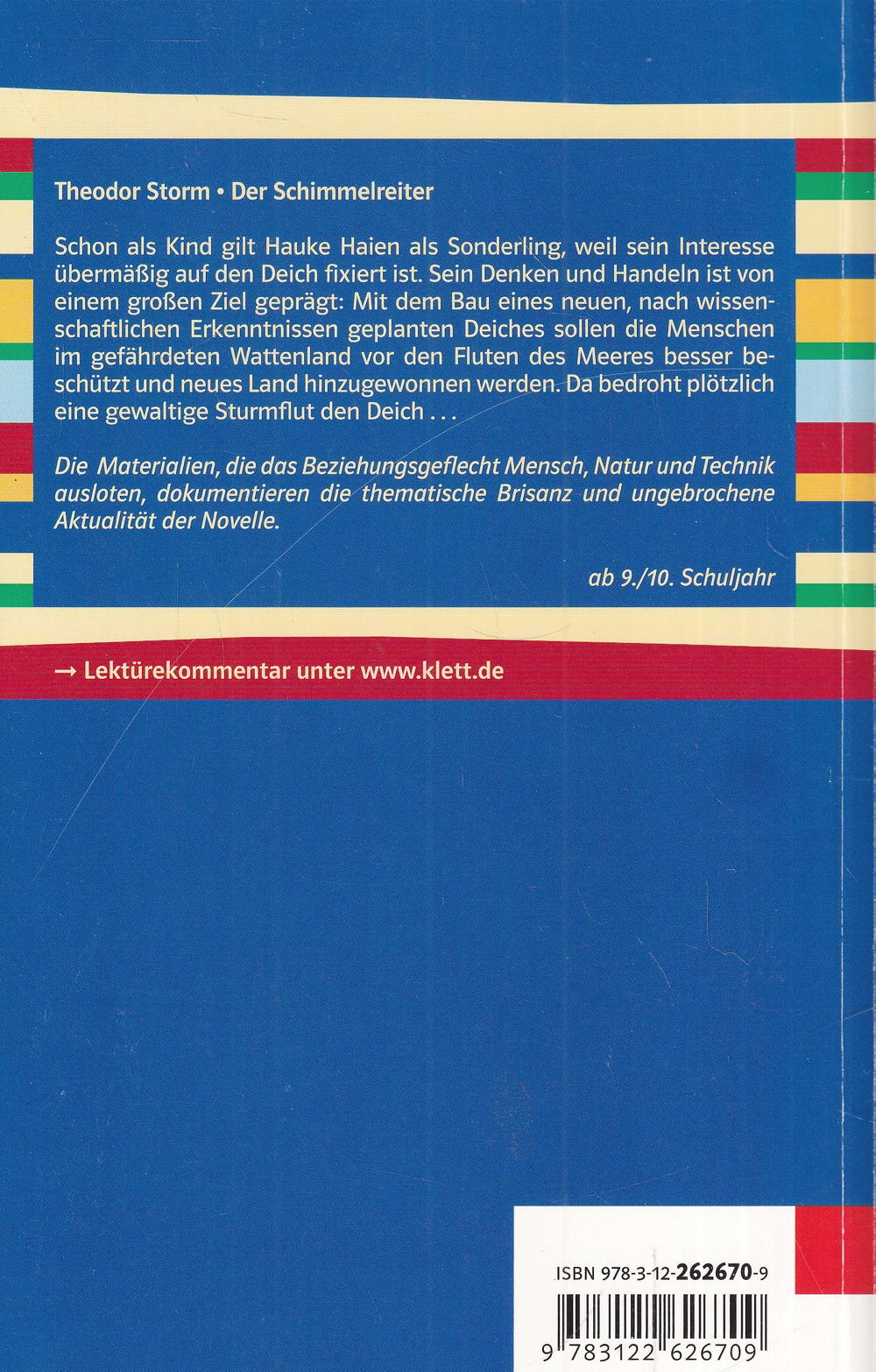 Mit Materialien, zusammengestellt von Peter Grosz Schon als Kind gilt Hauke Haien als Sonderling, weil sein Interesse übermässig auf den Deich fixiert ist. Sein Denken und Handeln ist von einem grossen Ziel geprägt: Mit dem Bau eines neuen, nach wissenschaftlichen Erkenntnissen geplanten Deiches sollen die Menschen im gefährdeten Wattenland vor den Fluten des Meeres besser beschützt und neues Land hinzugewonnen werden. Die Dorfgemeinschaft verfolgt sein Tun mit zunehmendem Misstrauen, denn etwas Unheimliches umgibt Hauke Haien. Da bedroht plötzlich eine gewaltige Sturmflut den Deich.