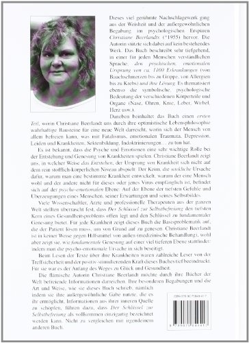 Warum bekommen Sie Kopfschmerzen? Wo liegt der Ursprung von Depressionen? Warum sind bestimmte Menschen empfänglich für Erkältungen? Was sind die emotionalen Wurzeln von Krebs? Durch welche psychologischen Muster steigt der Cholesterinspiegel im Blut? Und was kann man selbst tun, um die Genesung zu fördern? Es ist bekannt, dass Psyche und Emotionen eine wichtige Rolle bei der Entstehung und Heilung von Krankheiten spielen. Aus ihrer aufrichtigen Sorge um das Wohlbefinden von Mensch und Menschheit und einer innigen Liebe zum Leben, zeigt Christiane Beerlandt uns wie der Keim, die fundamentale Ursache dafür, warum man eine bestimmte Krankheit entwickelt, sich in den Tiefen der menschlichen Psyche befindet: auf der Ebene der intimsten Gefühle und Überzeugungen eines Menschen, seiner Erwartungen, seines Selbstbildes usw. Das massgeblichste Nachschlagewerk über die Beziehung zwischen Körper und Geist. Der weltweite Erfolg dieses Werkes erklärt sich durch die Tiefgründigkeit, Treffsicherheit und positiv-stimulierende Kraft der Texte. Indem Christiane Beerlandt auf die sanftmütige Sprache des Herzens hörte und ihre spezielle Begabung und tiefe Weisheit benutzte, ohne sich dabei auf ein bestehendes Werk zu stützen, ist Der Schlüssel zur Selbstbefreiung nicht mit irgendeinem anderen Buch zu vergleichen. Der einleitende Teil gewährt innovative, philosophische Einsichten und praktische Hinweise dafür, wie wir unser Leben selbst in die Hand nehmen können. Danach beschreibt dieses enzyklopädische Werk in einer für jeden Menschen verständlichen Sprache den psychischen, emotionalen Ursprung von ca. 1300 Erkrankungen (von Bauchschmerzen bis zu Grippe, von Allergien bis zu Krebs) und deren Überwindung. Es beinhaltet auch faszinierende Kapitel über die symbolische, psychologische Bedeutung der verschiedenen Körperteile und Organe (Gehirn, Ohren, Herz, Drüsen, Knie, Leber, die unterschiedlichen Finger, Zehen, Wirbel usw. ). Sowohl von Laien als von Ärzten und professionellen Therapeuten zu Rate gezogen. Für jede Krankheit zeigt dieses Buch die Basisproblematik auf, die der Patient lösen sollte, um von Grund auf zu genesen. Christiane Beerlandt ist in keiner Weise gegen Arzneimittel oder medizinische Behandlung und reicht der medizinischen Wissenschaft die Hand; wohl aber unterstreicht sie, wie wichtig es ist, gleichzeitig an sich selbst zu arbeiten, um die zugrundeliegende psycho-emotionale Problematik zu beseitigen. „Erst dann ist eine fundamentale Genesung möglich“, so Christiane Beerlandt.