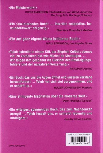 Dr. Nassim Nicholas Taleb, geboren im Libanon, ist Finanzmathematiker, philosophischer Essayist und Forscher in den Bereichen Risiko und Zufall. Seine Einsichten bezieht er in erster Linie aus einer 20-jährigen Tätigkeit im Handel mit Derivaten. Taleb lebt in New York, wo er Mathematik an der New York University lehrt.