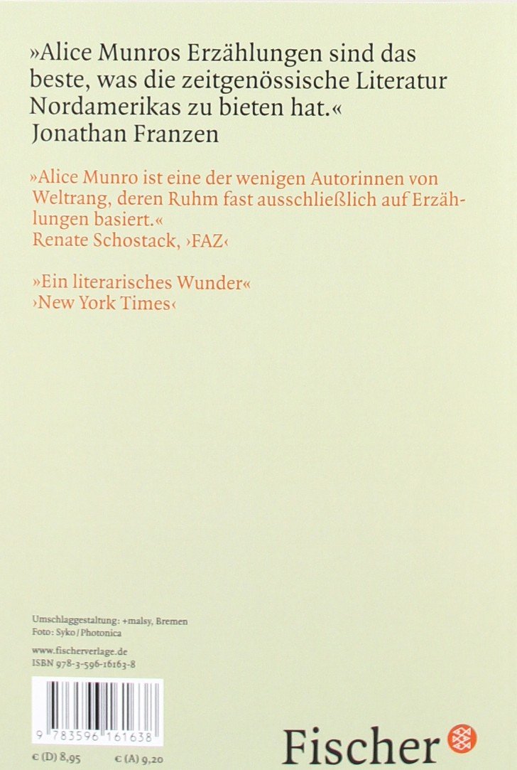 "Bei Alice Munro gelangt man lesend wie Hand in Hand mit ihr zu der Erkenntnis eines Augenblicks; das ist eine merkwürdige und eher seltene Form von Gemeinsamkeit mit einem Autor. Ich lese - das bedeutet, ich lebe mich in das Leben eines anderen Menschen ein." Judith Hermann