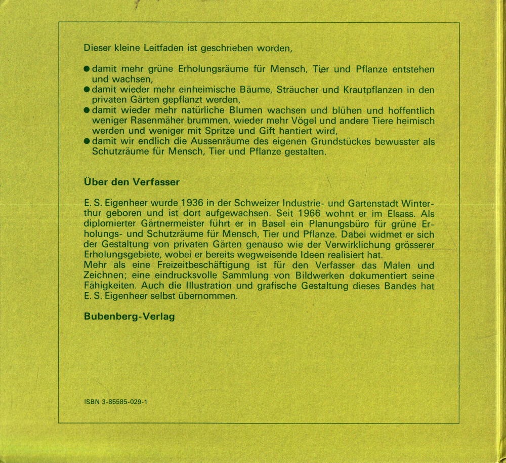 damit wir endlich die Aussenräume des eigenen Grundstückes bewusster als Schutzräume für Mensch, Tier und Pflanze gestalten.