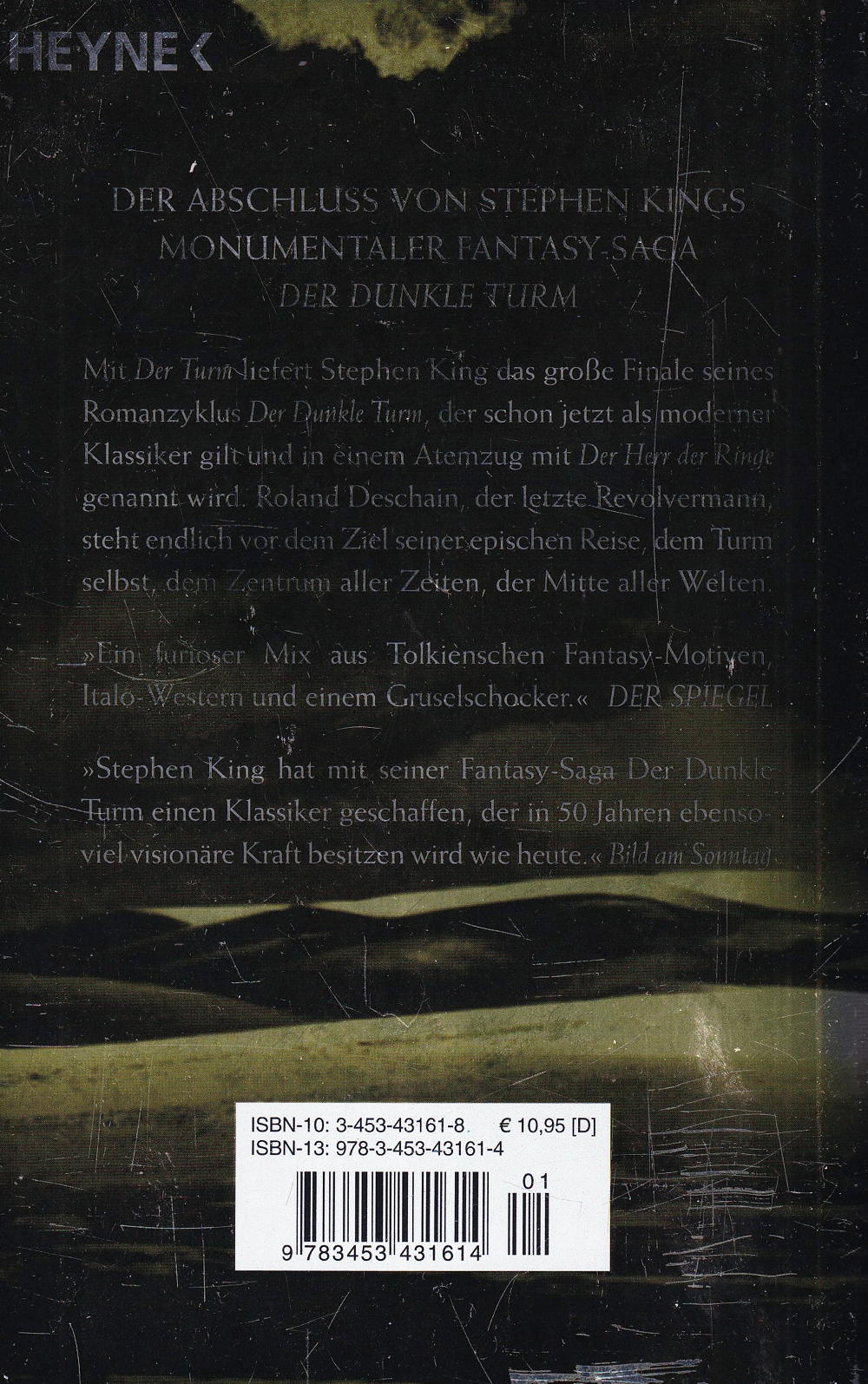 Mit "Der Turm" liefert Stephen King das grosse Finale seines Romanzyklus "Der Dunkle Turm", der schon jetzt als moderner Klassiker gilt und in einem Atemzug mit "Der Herr der Ringe" genannt wird. Roland Deschain, der letzte Revolvermann, steht endlich vor dem Ziel seiner epischen Reise, dem Turm selbst, dem Zentrum aller Zeiten, der Mitte aller Welten.