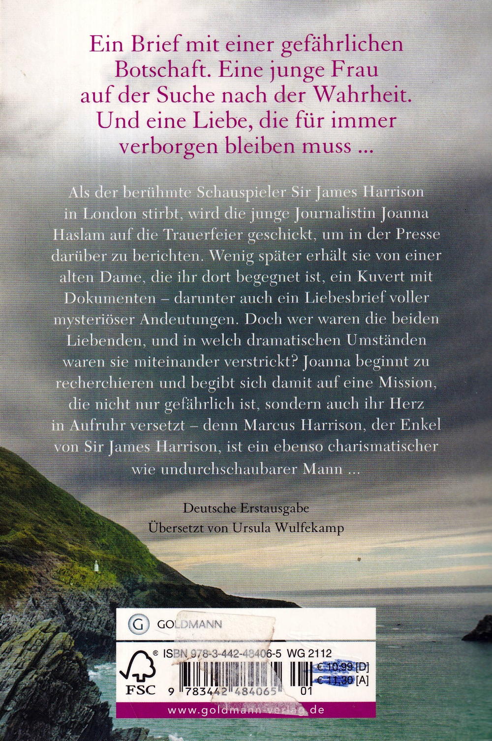 Als der berühmte Schauspieler Sir James Harrison in London stirbt, trauert das ganze Land. Die junge Journalistin Joanna Haslam soll in der Presse von dem grossen Ereignis berichten und wohnt der Trauerfeier bei. Wenig später erhält sie von einer alten Dame, die ihr dort begegnet ist, einen Umschlag mit alten Dokumenten – darunter auch einen Liebesbrief voller mysteriöser Andeutungen. Doch wer waren die beiden Liebenden, und in welch dramatischen Umständen waren sie miteinander verstrickt? Joannas Neugier ist geweckt, und sie beginnt zu recherchieren. Noch kann sie nicht ahnen, dass sie sich damit auf eine Mission begibt, die nicht nur äusserst gefährlich ist, sondern auch ihr Herz in Aufruhr versetzt – denn Marcus Harrison, der Enkel von Sir James Harrison, ist ein ebenso charismatischer wie undurchschaubarer Mann...