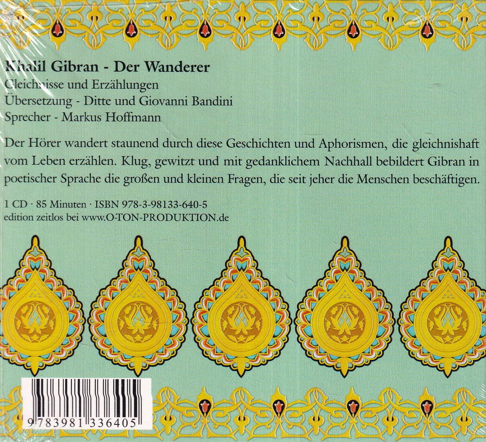 Der Hörer wandert staunend durch diese Geschichten und Aphorismen, die gleichnishaft vom Leben erzählen. Klug, gewitzt und mit gedanklichem Nachhall bebildert Gibran in poetischer Sprache die grossen und kleinen Fragen, die seit jeher die Menschen beschäftigen.