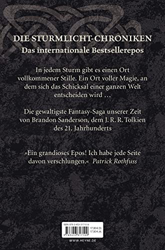 Roschar ist eine sturmumtoste Welt. Einst von mächtigen Kriegern beherrscht, deren magische Schwerter über Leben und Tod entschieden, droht es nun im Chaos zu versinken. Dalinar, der Grossprinz von Alethkar, ist besessen von dem Wunsch, das Geheimnis der Schwerter zu ergründen und das zerfallene Königreich zu einen. Doch der ehemals geniale Heerführer wird von nächtlichen Visionen geplagt, und der Glanz seiner früheren Heldentaten ist längst verblasst. Noch ahnt Dalinar nicht, dass auch der Sklave Kaladin und die junge Adlige Schallan Teil des grossen Spiels um das Schicksal der Sturmwelt sind...