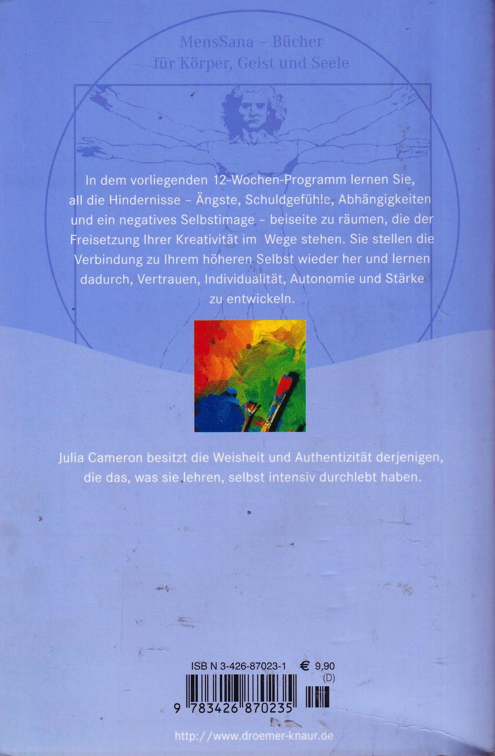 Julia Cameron bietet ein zwölf-wöchiges Trainingsprogramm zur Freisetzung der eigenen Kreativität. Dieses hat bereits Millionen Menschen geholfen, an Selbstvertrauen zu gewinnen und das eigene kreative Potenzial neu zu entdecken. Das 12-Wochen-Programm der international anerkannten Erfolgsautorin Julia Cameron fördert soziale, emotionale und intuitive Fähigkeiten. Es beseitigt Hindernisse wie Ängste und kreative Blockaden. Die Autorin und angesehene Seminarleiterin zeigt mit einfachen und effektiven Übungen einen Weg, wie man seine kreative Freiheit wieder entdeckt und das Leben reicher, lebendiger und erfüllter gestalten kann.