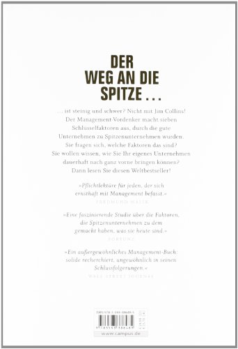 Der Weg an die Spitze ist steinig und schwer? Nicht mit Jim Collins! Der Management-Vordenker macht sieben Schlüsselfaktoren aus, durch die gute Unternehmen zu Spitzenunternehmen wurden.