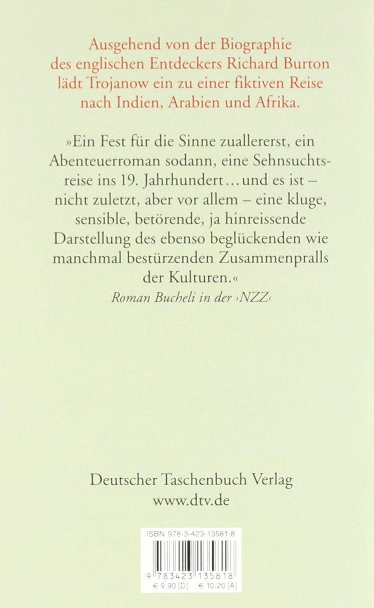 Iljia Trojanow hat einen farbigen Abenteuerroman geschrieben, der durch genaue Sachkenntnis begeistert. Er ist Burton durch drei Kontinente hinterhergereist, um der Faszination, die Hinduismus, Islam und afrikanischen Naturreligionen auf ihn ausübten, aufzuspüren.