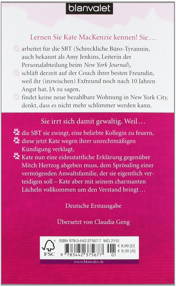 Lernen Sie Kate MacKenzie kennen! Sie ... arbeitet für die SBT (Schreckliche Büro-Tyrannin, auch bekannt als Amy Jenkins, Leiterin der Personalabteilung beim New York Journal), ... schläft derzeit auf der Couch ihrer besten Freundin, weil ihr (inzwischen) Exfreund noch nach zehn Jahren Angst hatte, JA zu sagen, ... findet keine neue bezahlbare Wohnung in New York City, ... denkt, dass es nicht mehr schlimmer werden kann, ... irrt sich damit gewaltig. Denn dann kommt Mitch, ein Anwalt, der einen sehr kreativen Spieltrieb entwickelt, um nicht nur Gerechtigkeit, sondern auch Liebe walten zu lassen ...