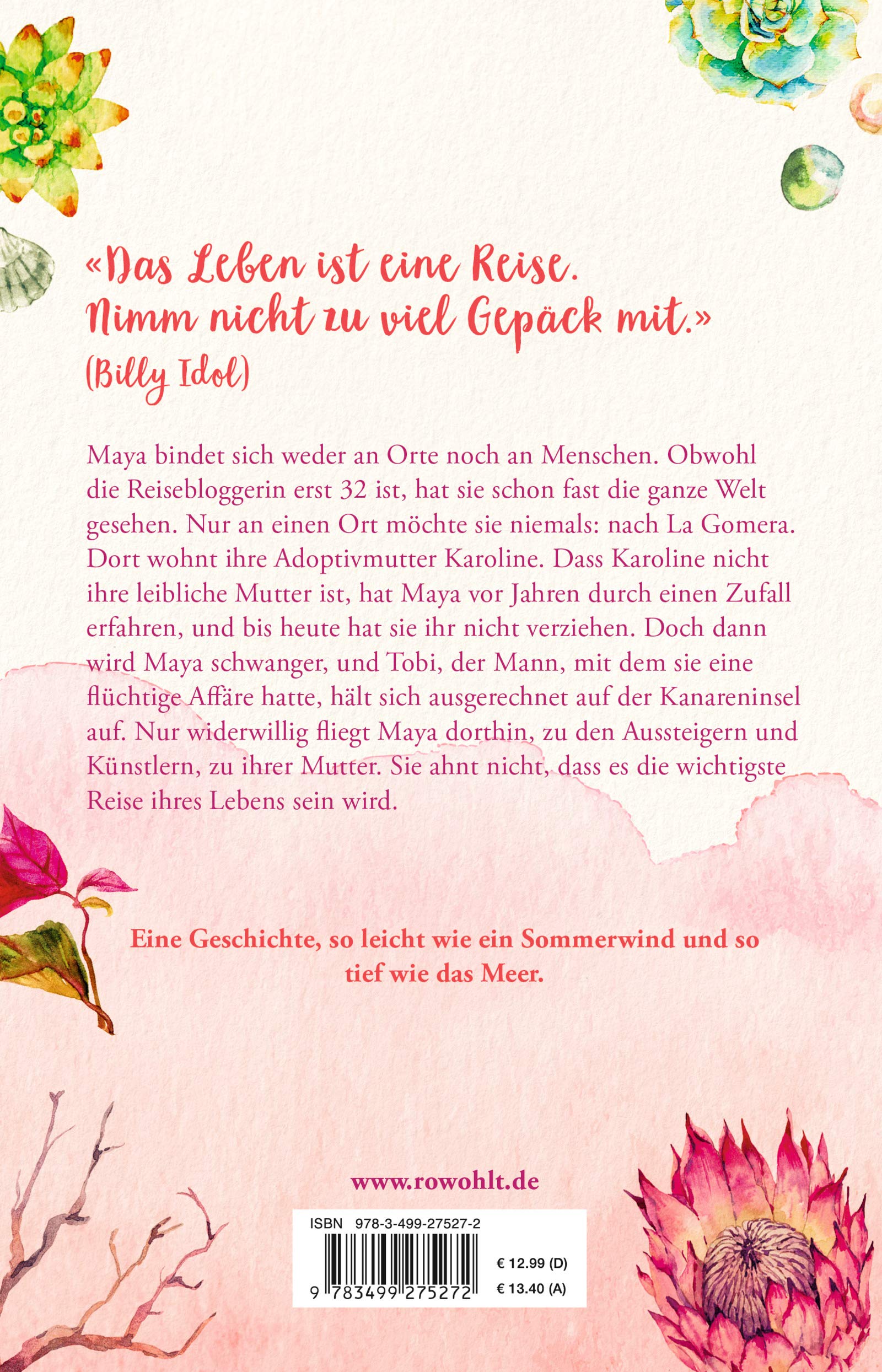 Maya bindet sich weder an Orte noch an Menschen. Obwohl die Reisebloggerin erst 32 ist, hat sie schon fast die ganze Welt gesehen. Nur an einen Ort möchte sie niemals: Nach La Gomera. Dort wohnt ihre Adoptivmutter Karoline. Dass Karoline nicht ihre leibliche Mutter ist, hat Maya vor Jahren durch einen Zufall erfahren, und bis heute hat sie ihr nicht verziehen. Doch dann wird Maya schwanger, und Tobi, der Mann, mit dem sie eine flüchtige Affäre hatte, hält sich ausgerechnet auf der Kanareninsel auf. Nur widerwillig fliegt Maya dorthin, zu den Aussteigern und Künstlern, zu ihrer Mutter. Sie ahnt nicht, dass es die wichtigste Reise ihres Lebens sein wird.