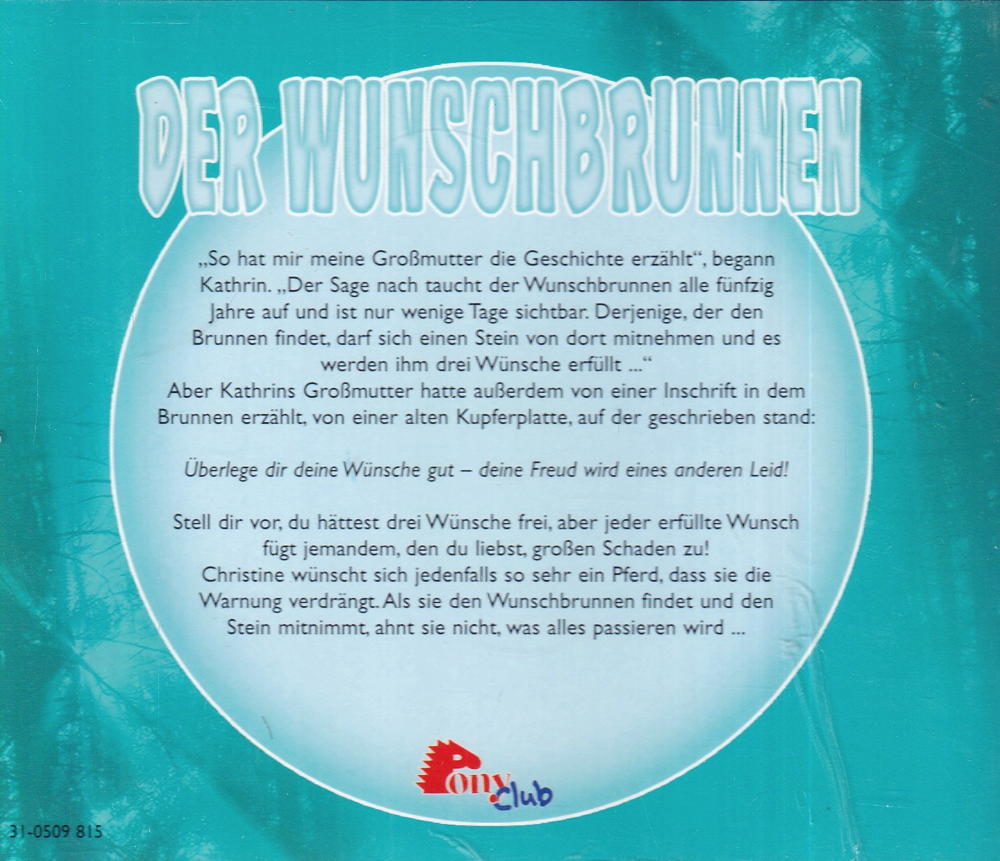 Christine wünscht sich jedenfalls so sehr ein Pferd, dass sie die Warnung verdrängt. Als sie den Wunschbrunnen findet und den Stein mitnimmt, ahnt sie nicht, was alles passieren wird...