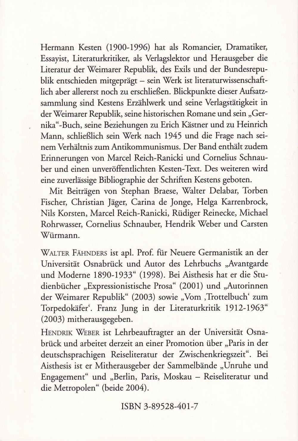Dichter - Literat - Emigrant über Hermann Kesten