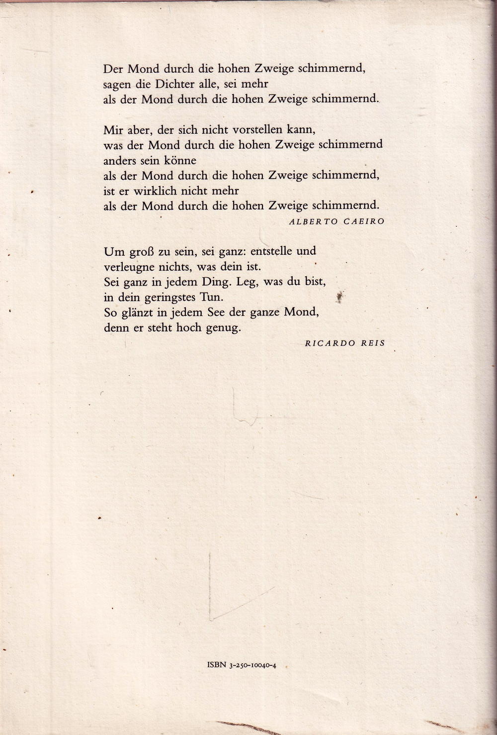 Der Mond durch die hohen Zweige schimmernd, sagen die Dichter alle, sei mehr als der Mond durch die hohen Zweige schimmernd.