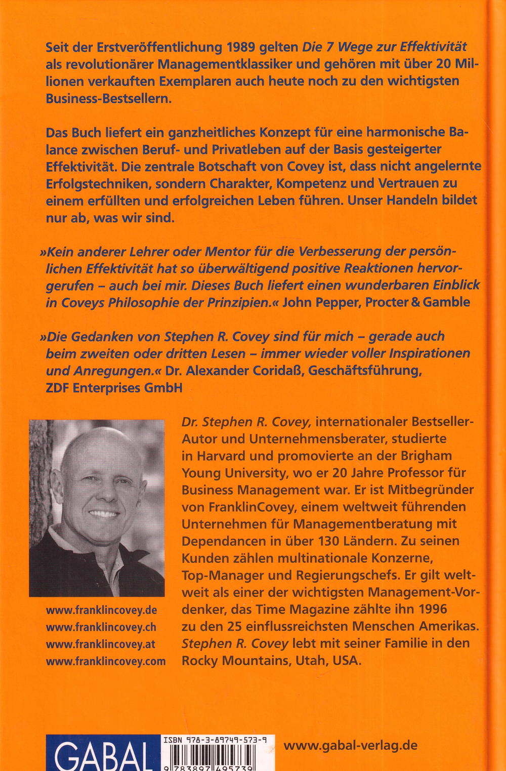 Dr. Stephen R. Covey wurde vom Time Magazine auf der Liste der 25 einflussreichsten Amerikaner geführt. Er ist Autor des internationalen Bestsellers Die 7 Wege zur Effektivität, den das Magazin Chief Executive zu den einflussreichsten Wirtschaftsbüchern der letzten 100 Jahre zählt und von dem weltweit über 20 Millionen Exemplare in 38 Sprachen verkauft wurden. Stephen R. Covey war Mitbegründer von FranklinCovey, einem international führenden Beratungs- und Trainingsunternehmen, das inzwischen in über 140 Ländern vertreten ist, und seit 2010 Hochschullehrer an der Jon M. Huntsman School of Business der Utah State University. In über 40 Jahren hat Stephen R. Covey Millionen von Menschen – darunter Staatsoberhäupter und Konzernchefs – vermittelt, wie gross die Kraft der Prinzipien ist, von denen die Effektivität von Einzelpersonen und Organisationen abhängt. „Die 12 Gründe des Gelingens“ (GABAL 2016) vereinigen nun posthum die Essenz des Coveyschen Erfolgskonzepts: Das Buch beinhaltet einige der besten Essays von Stephen R. Covey, die niemals zuvor in Buchform erschienen sind.