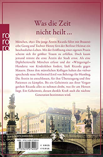 München, 1890: Die junge Ärztin Ricarda führt mit Brauereierbe Georg und Tochter Henny fern der Berliner Heimat ein beschauliches Leben. Mit der Eröffnung einer eigenen Praxis scheint sich ihr grösster Traum zu erfüllen. Doch kaum jemand nimmt die erste Ärztin der Stadt ernst. Als eine Diphteriewelle München erfasst und der «Würgeengel» Hunderte von Kinderleben fordert, läuft Ricarda gegen Mauern. Denn ihre männlichen Kollegen halten das vielversprechende neue Heilmittel Emil von Behrings für Humbug. Die Ärztin ist entschlossen, für ihre Überzeugung und ihre Patienten zu kämpfen. Bis ein Geheimnis aus ihrer Vergangenheit Ricarda alles zu nehmen droht, was ihr am Herzen liegt. Ein Geheimnis, dessen dunkle Kraft auch die nächste Generation bestimmen wird.