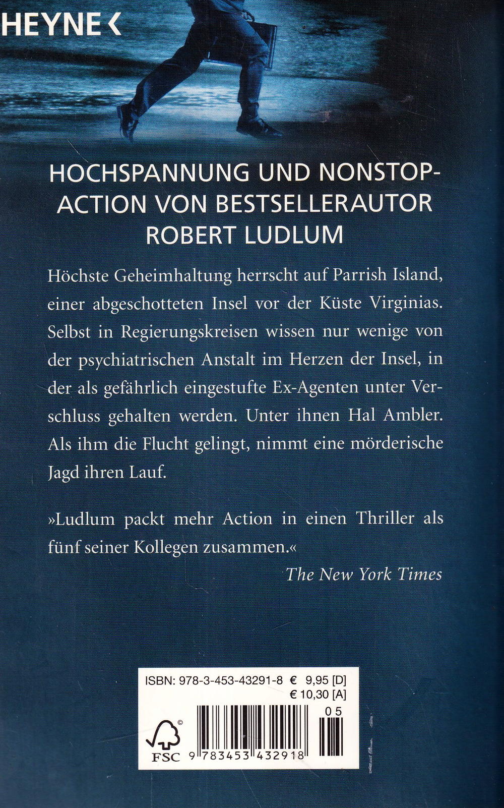 Robert Ludlum beherrscht unangefochten das Feld des klassischen Spionage- und Agententhrillers. Auch sein neuester Roman bietet wieder eine rasante Story um Intrige und tödlichen Verrat: Ex-Agent Hal Ambler wird von seinen einstigen Auftraggebern auf einer entlegenen Insel gefangen gehalten. Als ihm die Flucht gelingt, nimmt eine mörderische Jagd ihren Lauf.