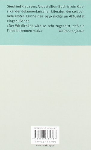 Kracauers Angestellten-Buch ist ein Klassiker der analytisch-dokumentarischen Literatur, der seit seinem Erscheinen (1930) kaum etwas an Aktualität eingebüsst hat. »Der Wirklichkeit wird so sehr zugesetzt, dass sie Farbe bekennen muss.