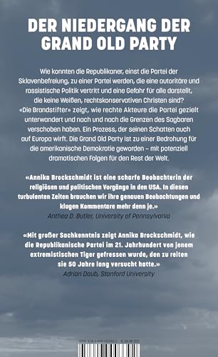 «Die Brandstifter» zeichnet die Geschichte der Republikanischen Partei nach und stellt ihre wichtigsten Akteure vor. Dabei wird deutlich, wie porös die Brandmauer zwischen Rechtsextremismus und Konservatismus in den USA schon immer war, nicht erst seit Trump. Brockschmidt erzählt packend, wie historische Entwicklungen und Machtkämpfe die Partei geprägt und radikalisiert haben – und warum das Ergebnis der Präsidentschaftswahl 2024 nicht nur für die USA von entscheidender Bedeutung sein wird.