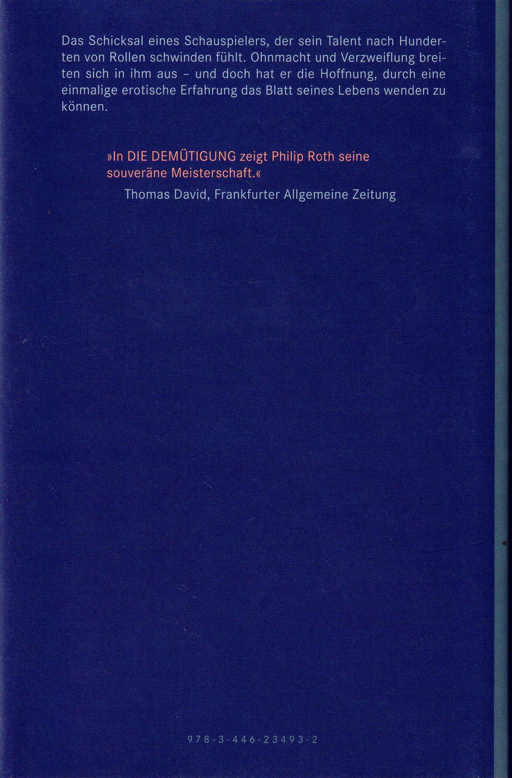 Für Simon Axler geht es bergab. Mit sechzig hat er, einer der besten Theaterschauspieler, alles Selbstvertrauen verloren. Als er auch noch von seiner Frau verlassen wird, kehrt er der Bühne endgültig den Rücken zu und beginnt eine scheinbar unmögliche Beziehung mit der lesbischen Tochter eines Jugendfreundes. Doch was zunächst wie ein belebender Trost aussieht, erweist sich als Flucht vor der Wirklichkeit. Philip Roth erzählt in seinem Roman mit unverwechselbarer Eindringlichkeit und Ironie vom Schicksal eines alternden Schauspielers. Auf Simons Reise ans Ende der Nacht entblösst der in den USA lebende Autor gnadenlos alle menschlichen Täuschungen - Liebe und Macht, Leidenschaft und Prestige.