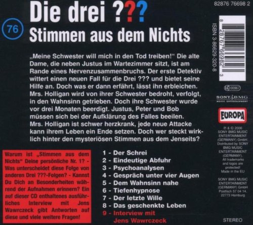 Mrs. Holligan wird von ihrer Schwester bedroht, verfolgt, in den Wahnsinn getrieben. Doch ihre Schwester wurde vor drei Monaten beerdigt. Justus, Peter und Bob müssen sich bei der Aufklärung des Falles beeilen.
