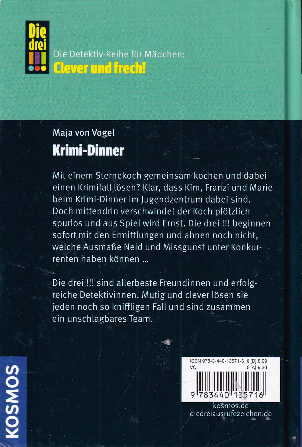 Wohin ist der Sternekoch verschwunden, der beim Krimi-Dinner im Jugendzentrum kochen sollte? Die drei !!! machen sich sofort auf die Suche und stossen auf ein verhängnisvolles Geheimnis. Die drei !!! sind die allerbesten Freundinnen und erfolgreiche Detektivinnen. Mutig und clever lösen sie jeden noch so kniffligen Fall und sind zusammen ein unschlagbares Team.