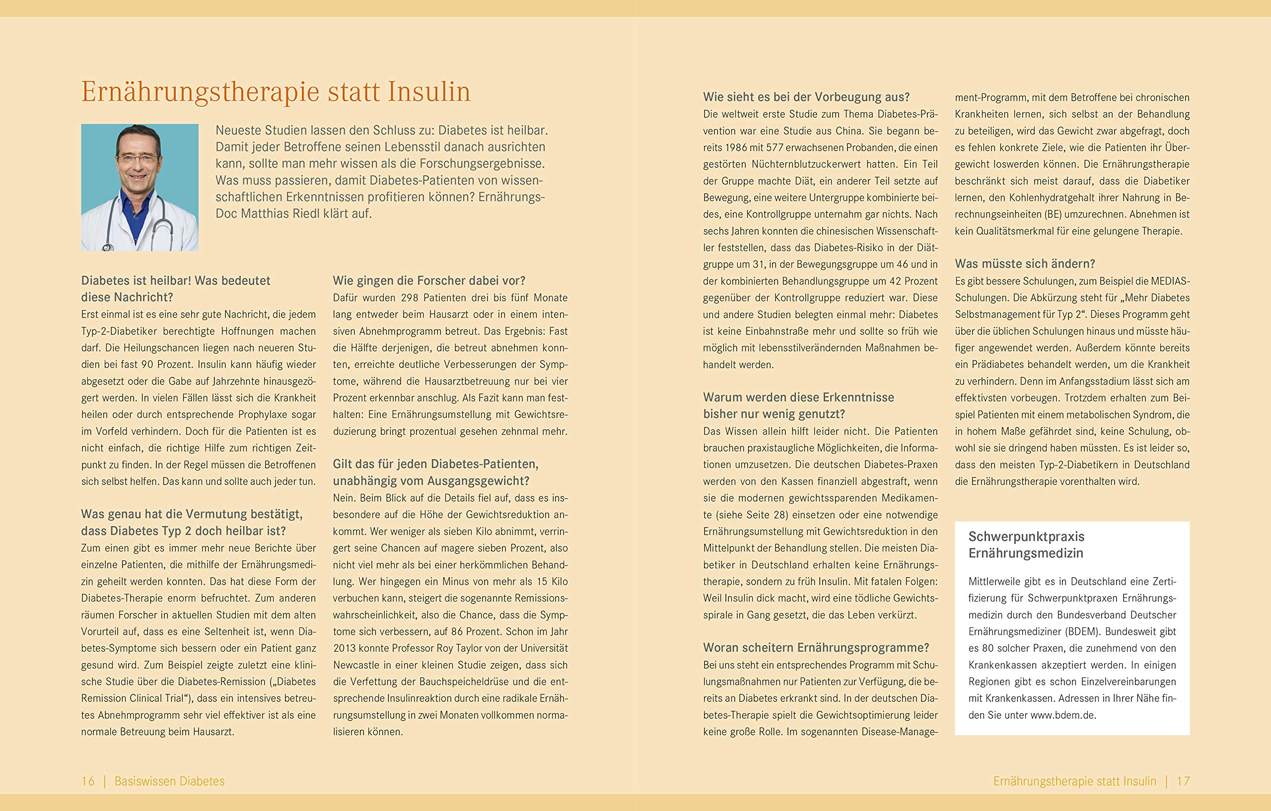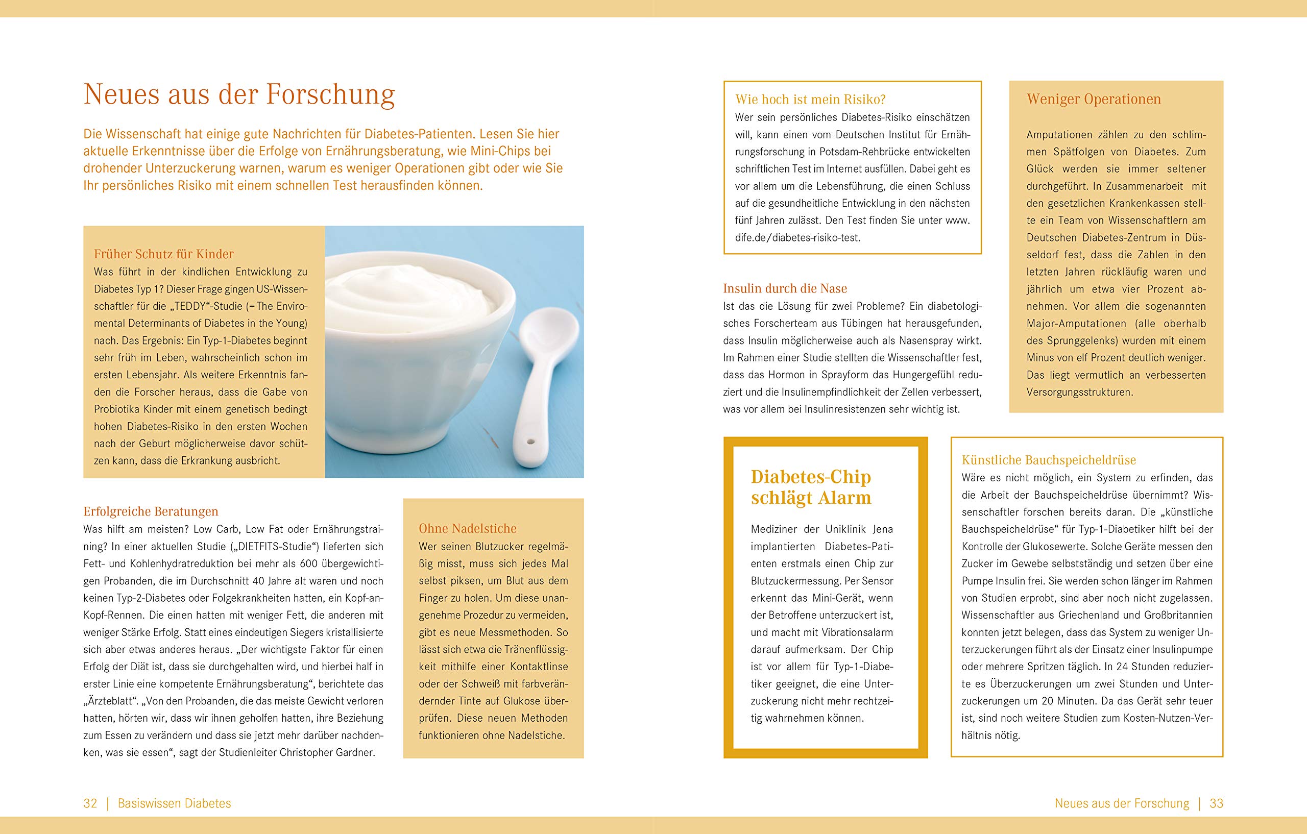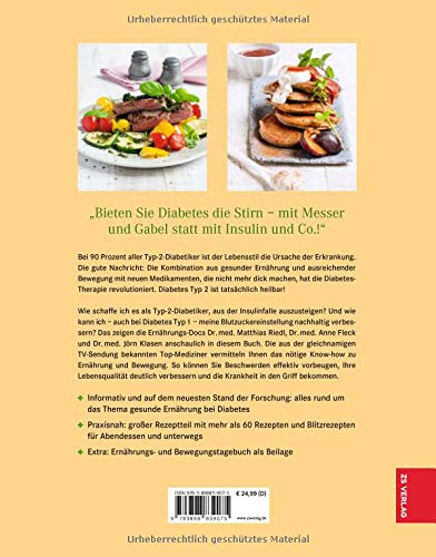 Wie schaffe ich es als Typ-2-Diabetiker, der Insulinfalle zu entkommen? Und wie kann ich – auch bei Diabetes Typ 1 – meine Blutzuckerwerte nachhaltig verbessern? Welche Lebensmittel sind besonders geeignet – und sind Kohlenhydrate grundsätzlich schlecht? Diese Fragen und alles Wissenswerte zum Thema Diabetes und gesunde Ernährung erläutern die Top-Mediziner Dr. med. Matthias Riedl, Dr. med. Anne Fleck und Dr. med. Jörn Klasen umfassend und leicht verständlich. Sie vermitteln Ihnen das nötige Know-how, damit Sie Ihre Lebensqualität deutlich verbessern und die Krankheit in den Griff bekommen können. Der grosse Rezeptteil mit mehr als 60 Rezepten macht die Umsetzung in der heimischen Küche ganz einfach. Und in dem beigelegten Ernährungs- und Bewegungstagebuch kann jeder das eigene Verhalten analysieren und die Fortschritte festhalten. Bieten Sie Diabetes die Stirn – mit Messer und Gabel statt mit Insulin und Co.!
