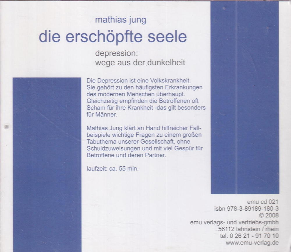 Die Depression ist eine Volkskrankheit. Sie gehört zu den häufigsten Erkrankungen des modernen Menschen überhaupt. Gleichzeitig empfinden die Betroffenen oft Scham für ihre Krankheit -das gilt besonders für Männer. Mathias Jung klärt an Hand hilfreicher Fallbeispiele wichtige Fragen zu einem grossen Tabuthema unserer Gesellschaft, ohne Schuldzuweisungen und mit viel Gespür für Betroffene und deren Partner.