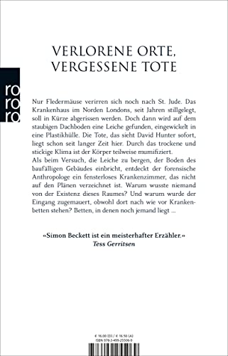 Nur Fledermäuse verirren sich noch nach St. Jude. Das Krankenhaus im Norden Londons, seit Jahren stillgelegt, soll in Kürze abgerissen werden. Doch dann wird auf dem staubigen Dachboden eine Leiche gefunden, eingewickelt in eine Plastikhülle. Die Tote, das sieht David Hunter sofort, liegt schon seit langer Zeit hier. Durch das trockene und stickige Klima ist der Körper teilweise mumifiziert.