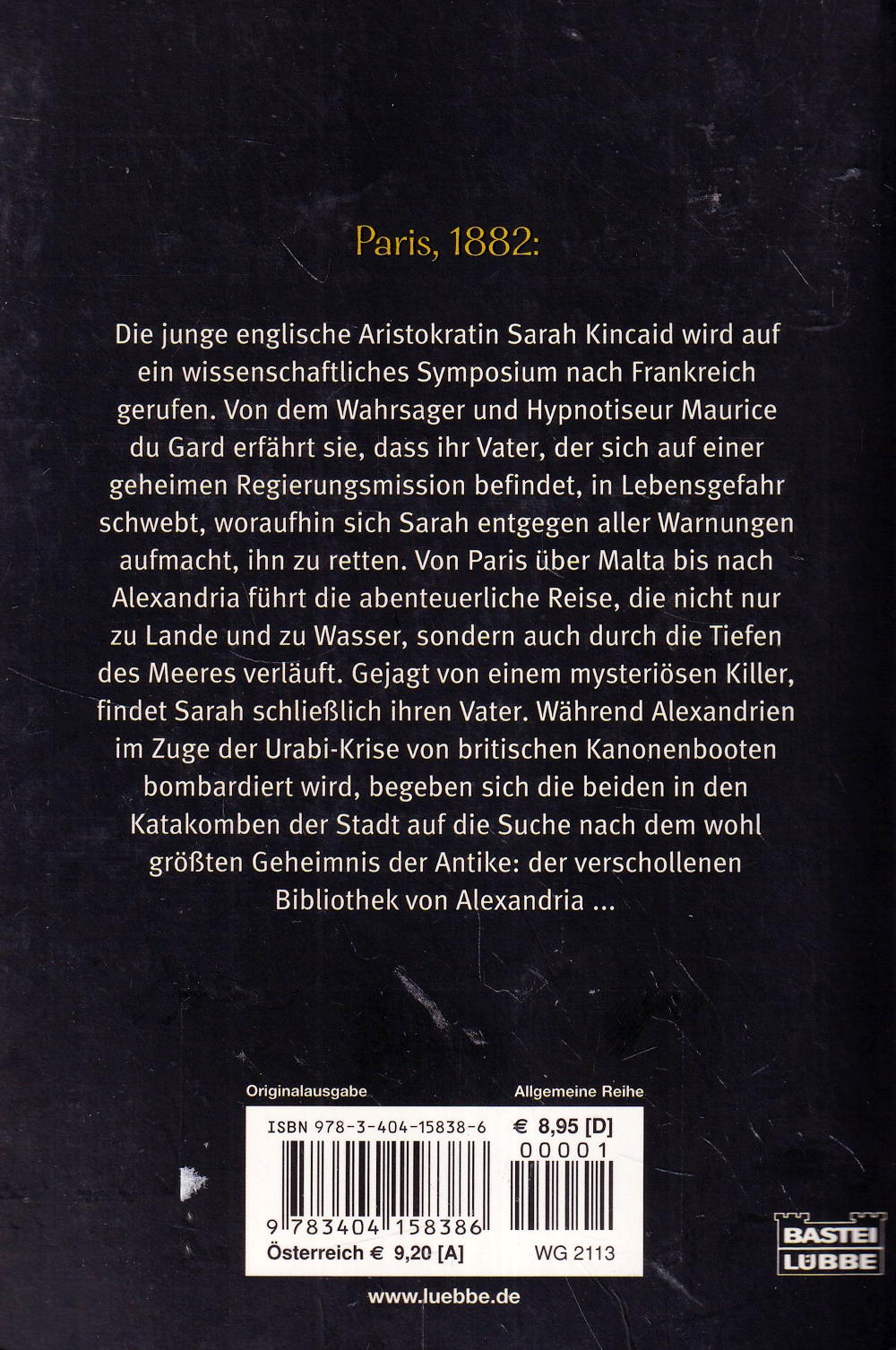 Während Alexandrien im Zuge der Urabi-Krise von britischen Kanonenbooten bombardiert wird, begeben sich die beiden in den Katakomben der Stadt auf die Suche nach dem wohl grössten Geheimnis der Antike: der verschollenen Bibliothek von Alexandria ...