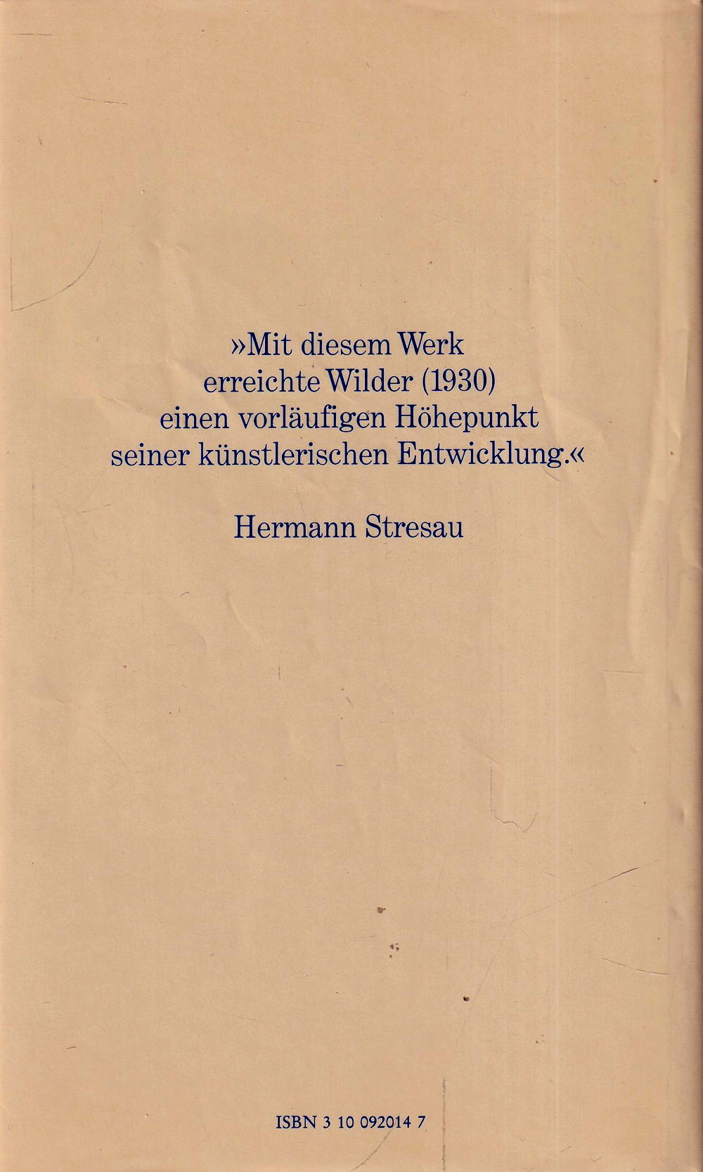 »Mit diesem Werk erreichte Wilder (1930) einen vorläufigen Höhepunkt seiner künstlerischen Entwicklung. «